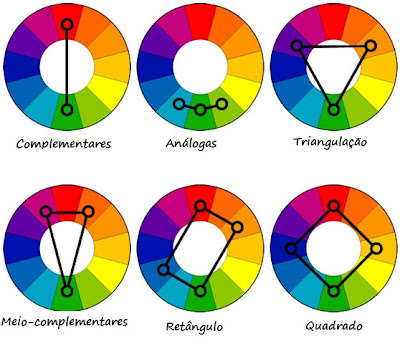 Cores complementares, são cores que estão em lados opostos no círculo cromático.